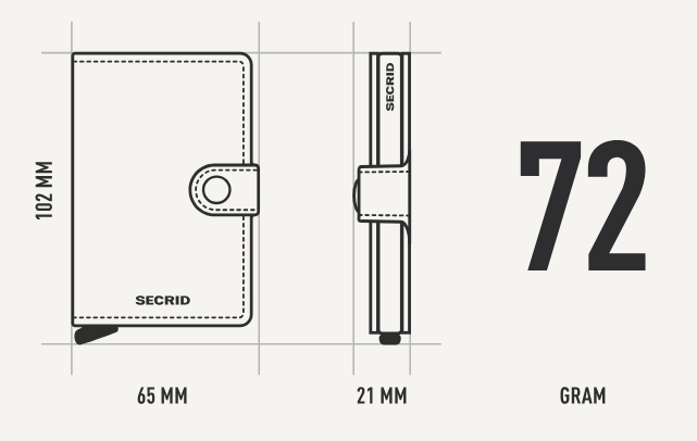Small in size and surprisingly large in storage capacity, the Miniwallet combines the best of both worlds. The exterior holds banknotes, receipt and cards, while the aluminum Cardprotector allows you to slide out cards with one simple motion and protects them from bending, breaking and unwanted wireless communication.