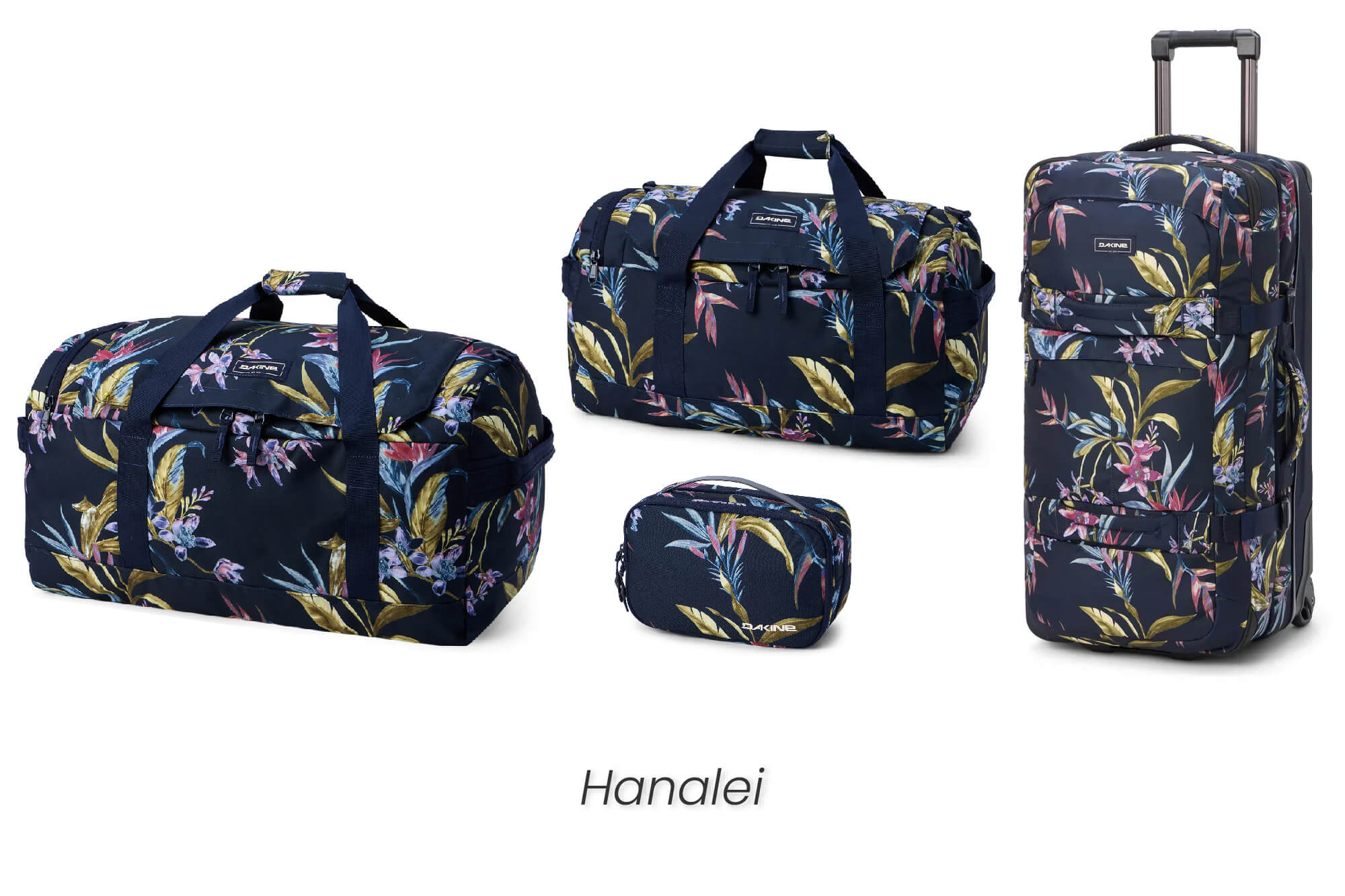 Some of Dakine's most popular travel staples are now available in Hanalei, a stunning dark blue floral print that's equal parts bold and refined. A great way to add a little personality to your travel kit.