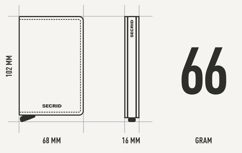 Its slim profile allows the Slimwallet to fit perfectly into any pocket. The open exterior is designed extra wide to accommodate cards, banknotes and receipts. The Cardprotector mechanism enables you to slide out cards with a simple motion, while the aluminium construction protects your cards from bending, breaking and unwanted wireless communication.