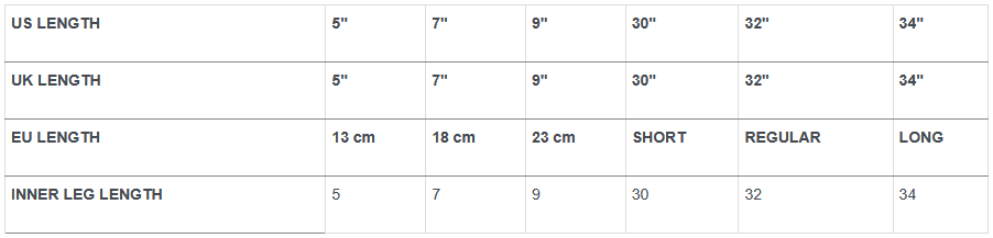 INSEAM LENGTH SHORTS & PANTS (INCHES)